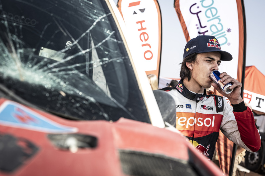 En esta Etapa 2, unos 400 km cronometrados entre Yanbu hasta Al-Ula, pinchar era más bien la norma: lo que podía pasar incluso yendo con cuidado. Guillaume de Mévius era el encargado de abrir pista, seguido de Nasser Al-Attiyah en su Dacia, pero el primero que lideraba era Saood Variawa con su Toyota.