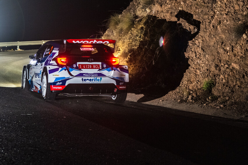 Enrique Cruz / Yeray Mujica han comenzado mandado en este penúltimo asalto. La dupla canaria impuso su ritmo en este primer tramo donde, con su Toyota GR Yaris Rally2, se han colocado como primeros líderes en Almería antes de una jornada de sábado decisiva con hasta 10 tramos por disputar.