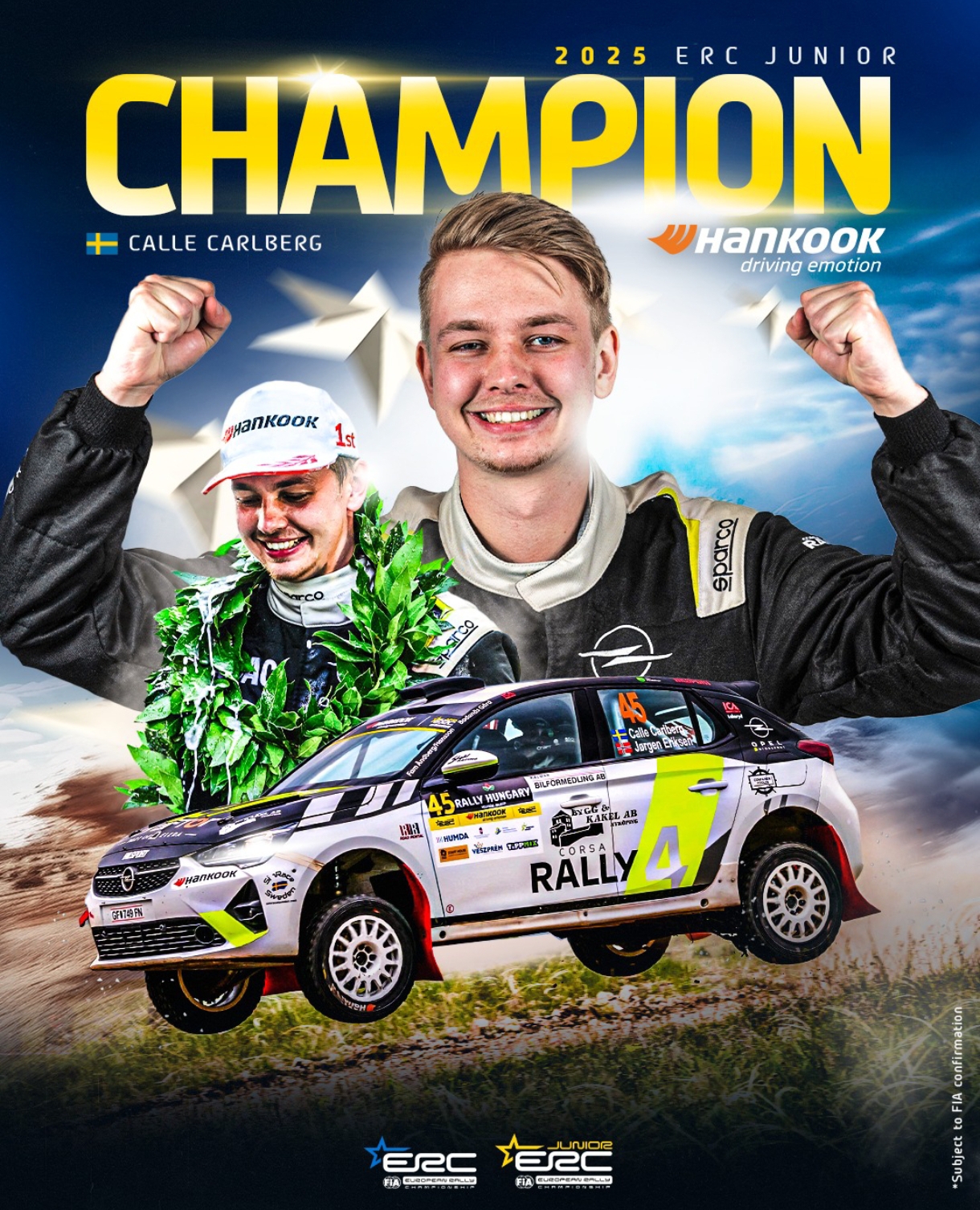 Calle Carlberg se proclama campeón del ERC Junior de la mano de Opel. En 2026 participará becado en el Junior WRC