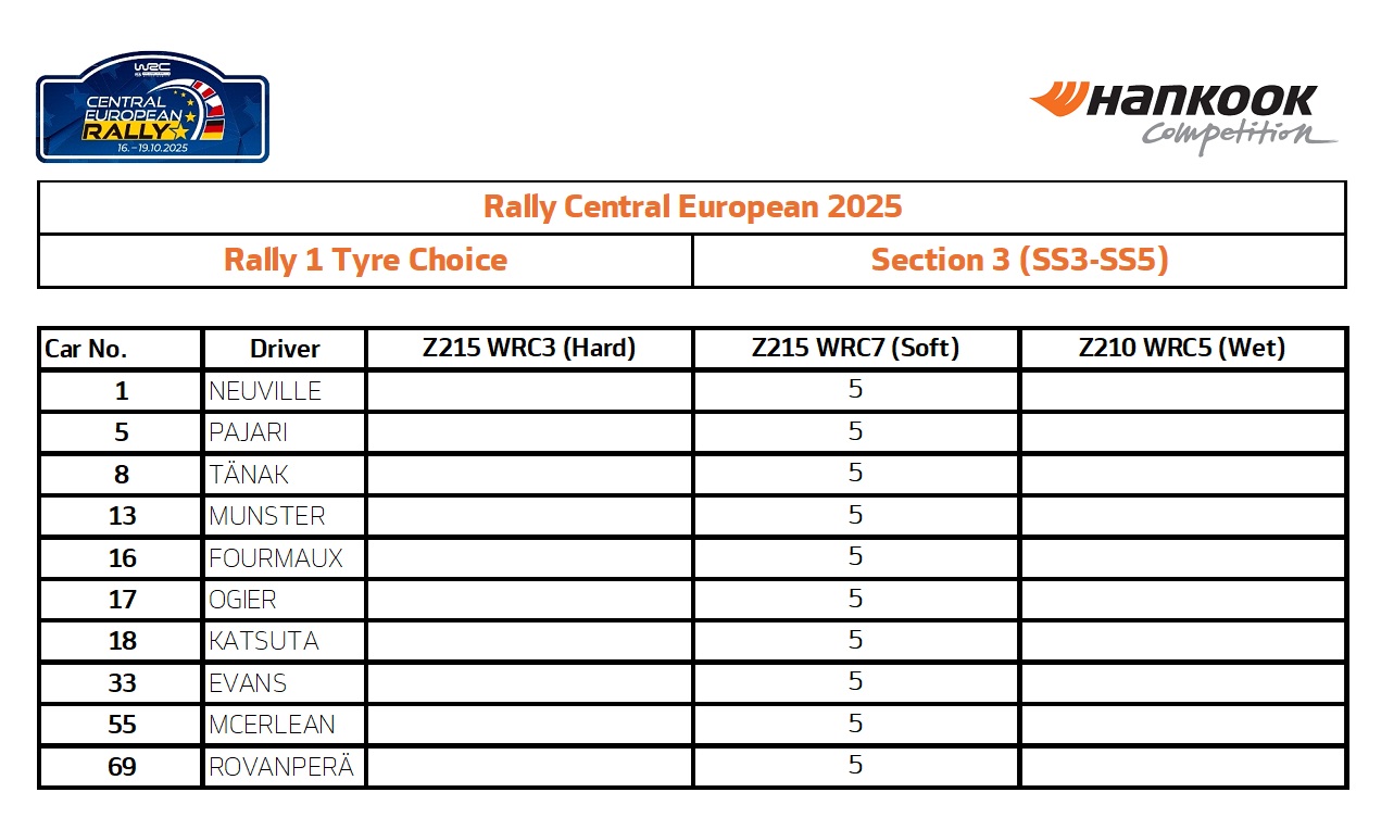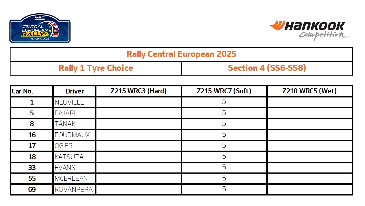 Monta de neumáticos de los Rally1 para esta tarde, todos con 5 blandos