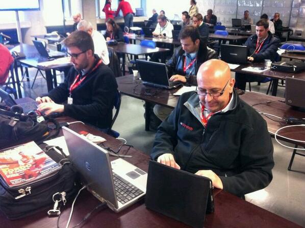 Parte del equipo de 'Scratch' en la sala de prensa del Rallye de Portgal.