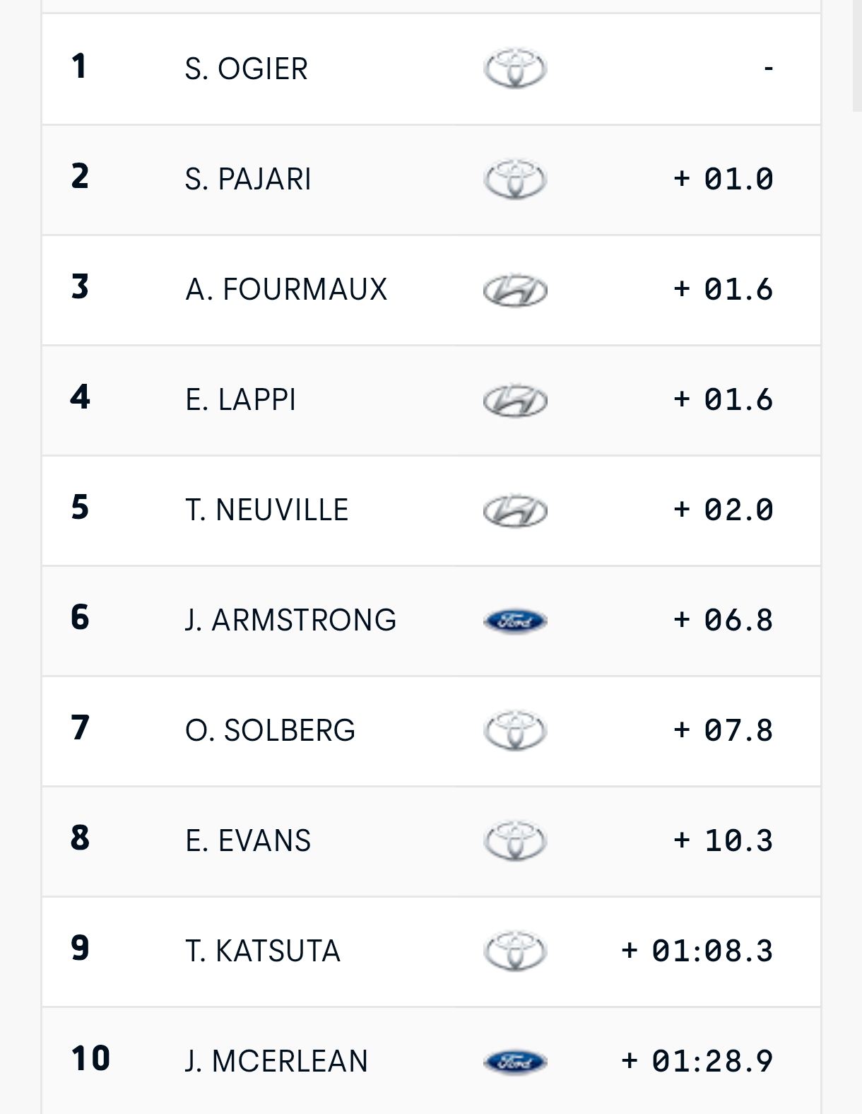 Tiempo positivo de Neuville, a solo 0.4seg dem scratch de Fourmaux