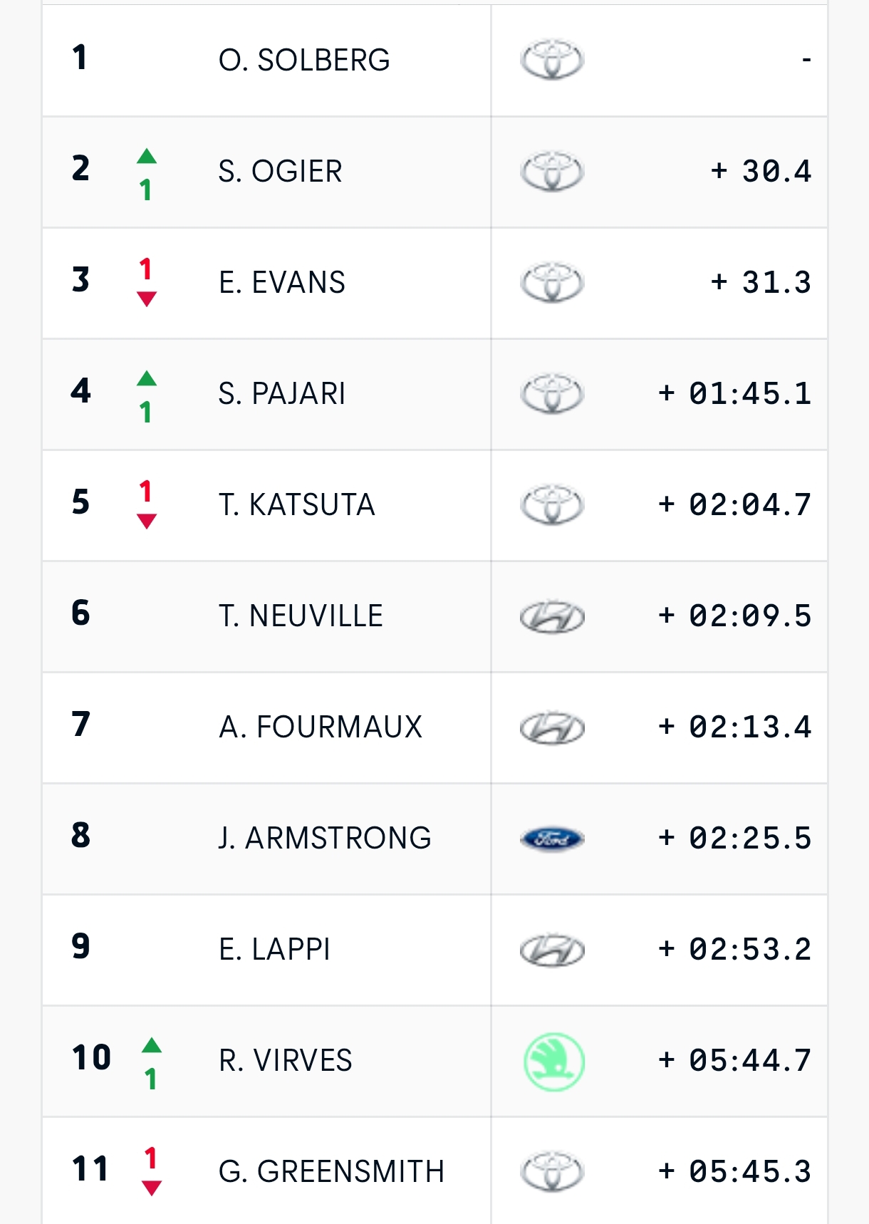 Suma y sigue Seb Ogier. El francés se apunta el primer tramo de la tarde y ya es segundo de la general, a 30.4seg del liderato de Solberg. Evans ahora marcha tercero a 31.3seg