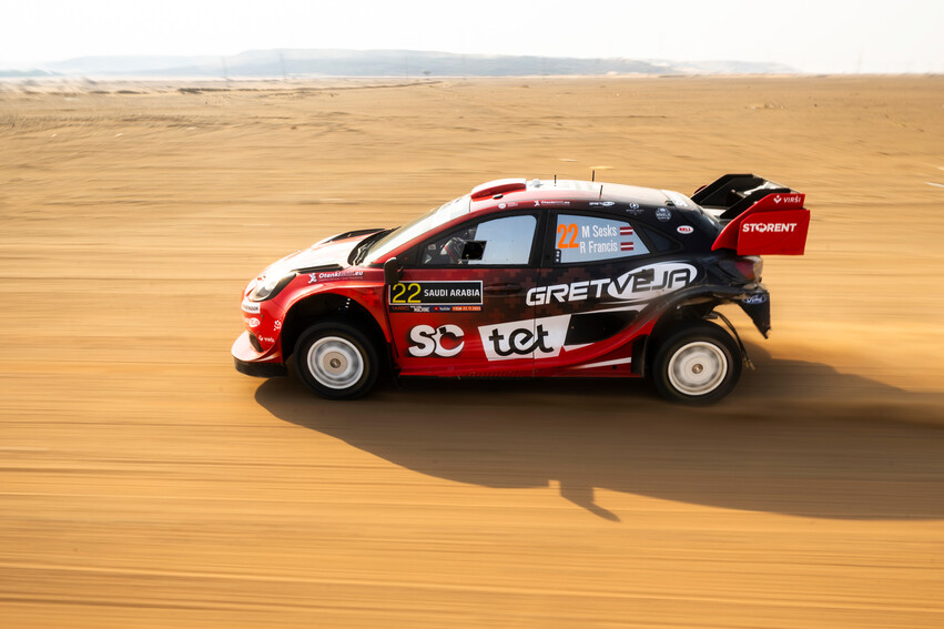 Absoluto caos en Arabia Saudí, en un rally con decenas de pinchazos y zonas más propias del Dakar que del WRC que está en juego en estos momentos. Adrien Fourmaux/Alex Coria lideraban la prueba por delante de Martins Sesks/Renars Francis y Thierry Neuville/Martijn Wydaeghe, pero una penalización por fichar un minuto antes coloca a los franceses de Hyundai fuera del podio, situándose Takamoto Katsuta/Aaron Johnston terceros para Toyota.